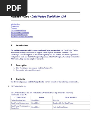 April Device Compatibility This software has been approved for use with the following devices: Documentation DataWedge Toolkit Version 3. Simplify Programming of Complex Data Processing with Android Intents Do you need to perform actions based on specific characters in the captured data, send some of the captured data to another application or look up information based on specific characters in the captured data?